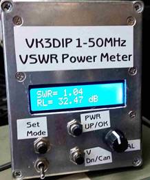 As can perhaps be seen the default state of the meter displays on the two lines of the display the SWR and (approximate, remember the log problem,) Return Loss in dB.