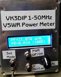 You will note that if at any time no power is detected (or rev. is greater than fwd. meaning you have the TRANS and ANT connections back-to-front) the meter displays a bad values, check connections message. After a minute or so of this state the backlight will be turned off to save power. The backlight will come back on as soon as the correct (non-zero) levels of power are applied.