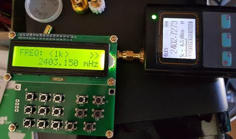 I initially tried this small bare board module which is quite useful for many things in that it produces a good signal from 35MHz to 4GHz, push button frequency entry, LCD display, and can be bought for around $20 on ebay etc.