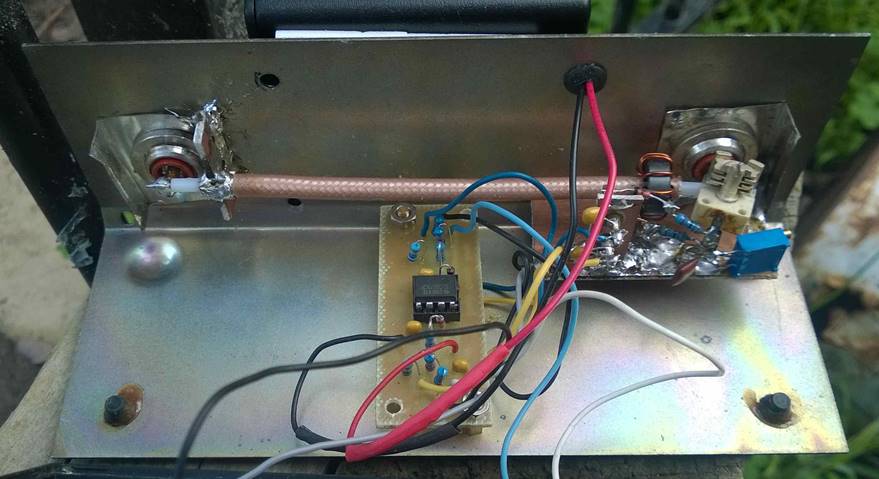 Figure 7. shows the inside of a somewhat larger 27MHz CB meter which had power scales as well as SWR. You will also see in this case I used a pair of trimers to vary the value of R1 as shown in Figure 4
